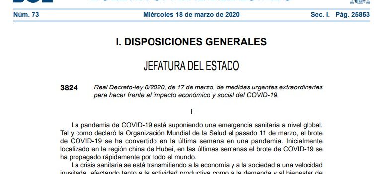 En este enlace podéis consultar el Real Decreto-ley 8/2020, de 17 de marzo, de medidas urgentes extraordinarias para hacer frente al impacto económico y social del COVID-19.