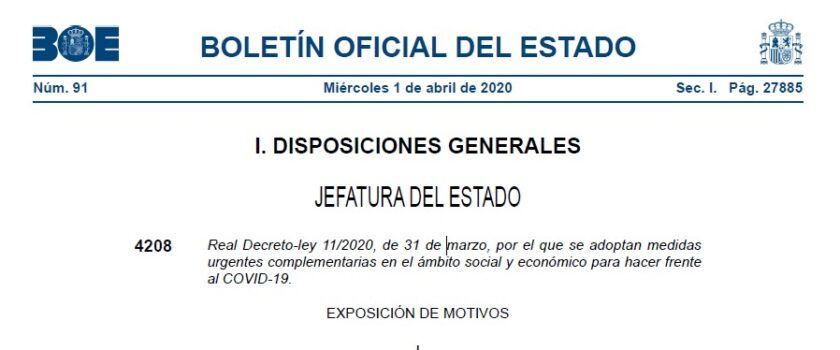 RDL 11/2020 por el que se adoptan medidas urgentes complementarias en el ámbito social y económico para hacer frente al COVID-19.