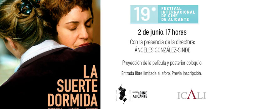 La directora y exministra de Cultura, Ángeles González-Sinde, participará en la proyección de su película La suerte dormida en una actividad organizada por el Ilustre Colegio de la Abogacía de Alicante (ICALI) y el Festival Internacional de Cine de Alicante.