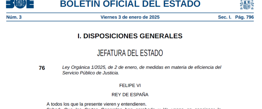 Ley Orgánica 1/2025, de 2 de enero, de medidas en materia de eficiencia del Servicio Público de Justicia